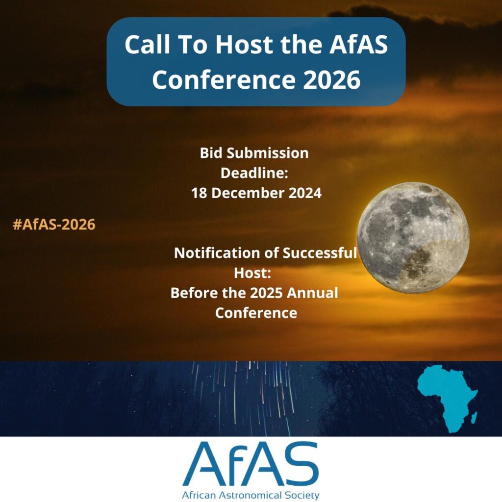 The African Astronomical Society (AfAS) invites bids from institutions on the African continent to host the AfAS Annual Conference in 2026. Institutions within South Africa are not eligible to submit a bid under this call. This prestigious event provides a platform for the African astronomical community to showcase research, foster collaboration, and promote the advancement […]