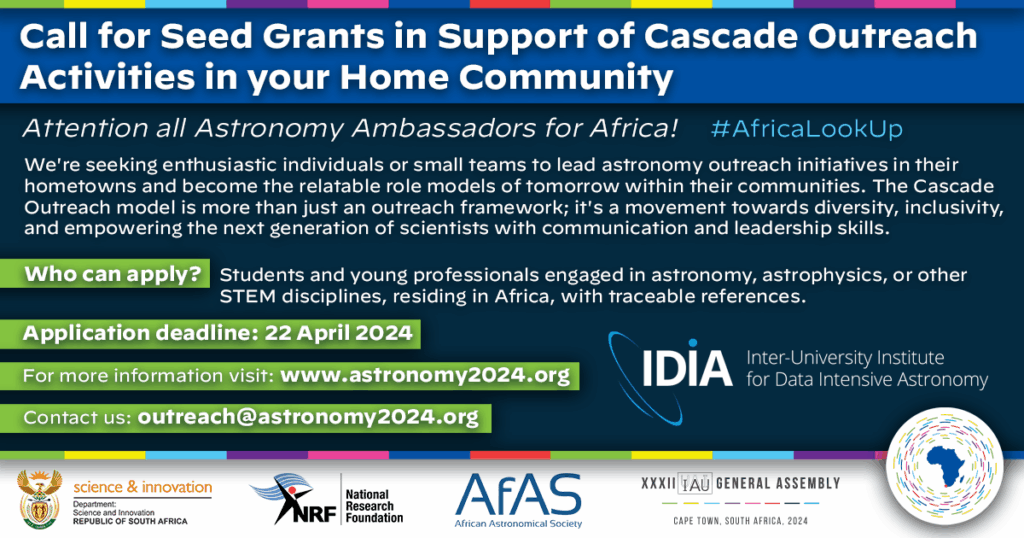 Calling all Young African Artists! Under the #AfricaLookUp campaign, the International Astronomical Union General Assembly 2024 (IAU GA) and the African Astronomical Society (AfAS) Outreach and Education committee, in partnership with the University of the Western Cape (UWC), South African Radio Astronomy Observatory (SARAO), Iziko Museums of South Africa, North West University (NWU) and the […]